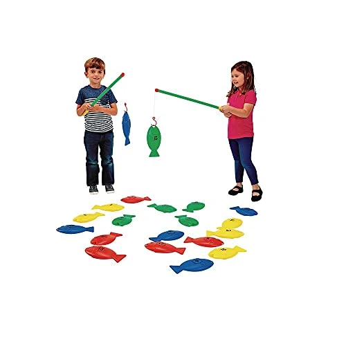 - BRIGHTLY COLOURED AND PRACTICAL – includes 20 brightly coloured, numbered fish & 2 fishing rods, together with a net bag for storage