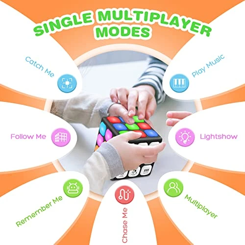 - MULTIPLAYER MODES: In multiplayer battles, the last one is the winner! The Cubik flashing cube features single and multiplayer game play options, the red light track button, press 20 of them to enter the next level, and the time will become more and more urgent. Light up mode: Display various lights, press the light button to switch the flashing effect. In piano mode, press the red light button to start playing. After playing, press the red light button again to play the corresponding song.