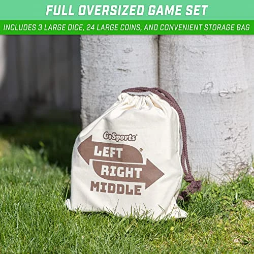- 3-8 PLAYERS: Take turns rolling the dice and follow the commands to pass your coins to the left, right or center pile; The last player to have any coins left wins the game, full rules included