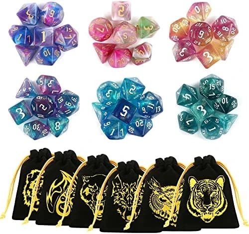 - These DND dice sets have golden large numbers on each side and features marked 6 and 9 for easy reading
