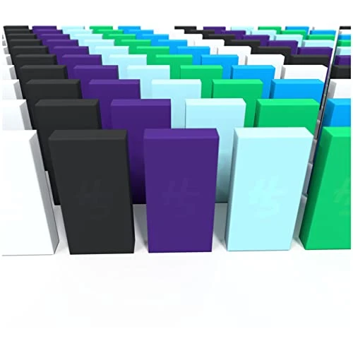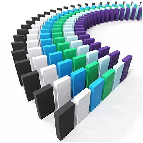 - Includes 30 black dominoes, 30 white dominoes, 30 neon blue dominoes, 30 green dominoes, 30 purple dominoes, 30 light blue dominoes