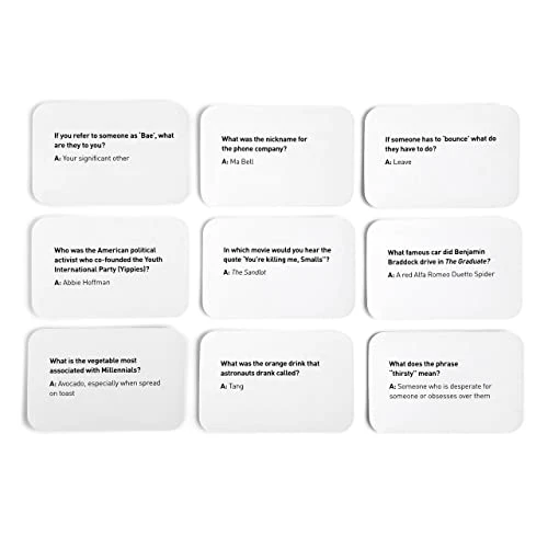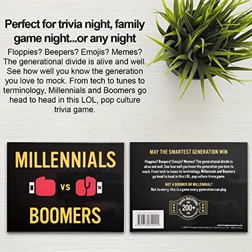 - ⭐ PLAY AND LEARN: Are you seeking for a fun way to learn about the United States? Playing our millennial vs boomers Game, you will learn about historical landmarks, tourist spots, famous people, and the pop culture that has forged this great country.