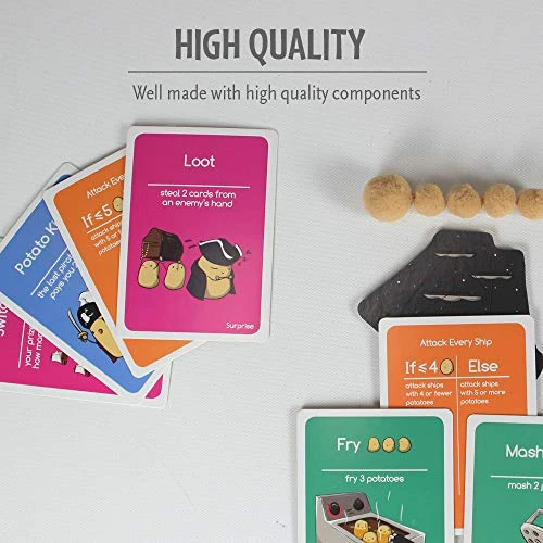 - Hilariously fun – Master the art of Potato War! Battle other players to eliminate their Potato Crews and seize their Potato King Cards. Acquire all seven Potato King Cards OR be the last player sailing and you win!