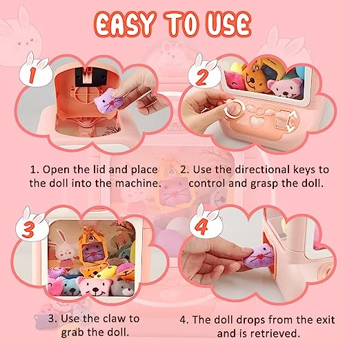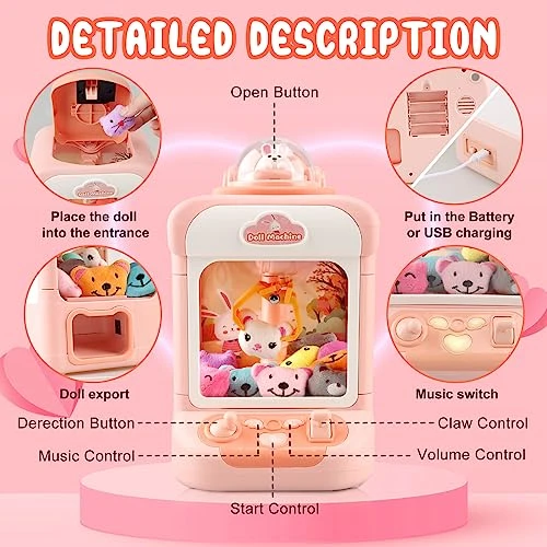 - VIBRANT LIGHTS & CATCHY TUNES: Step into a world of dazzling lights and catchy tunes with our mini claw machine for kids. The flashing LED lights and lively music create an authentic arcade atmosphere that adds to the excitement. It’s a feast for the senses that will transport you to the fun-filled world of carnivals and game arcades.